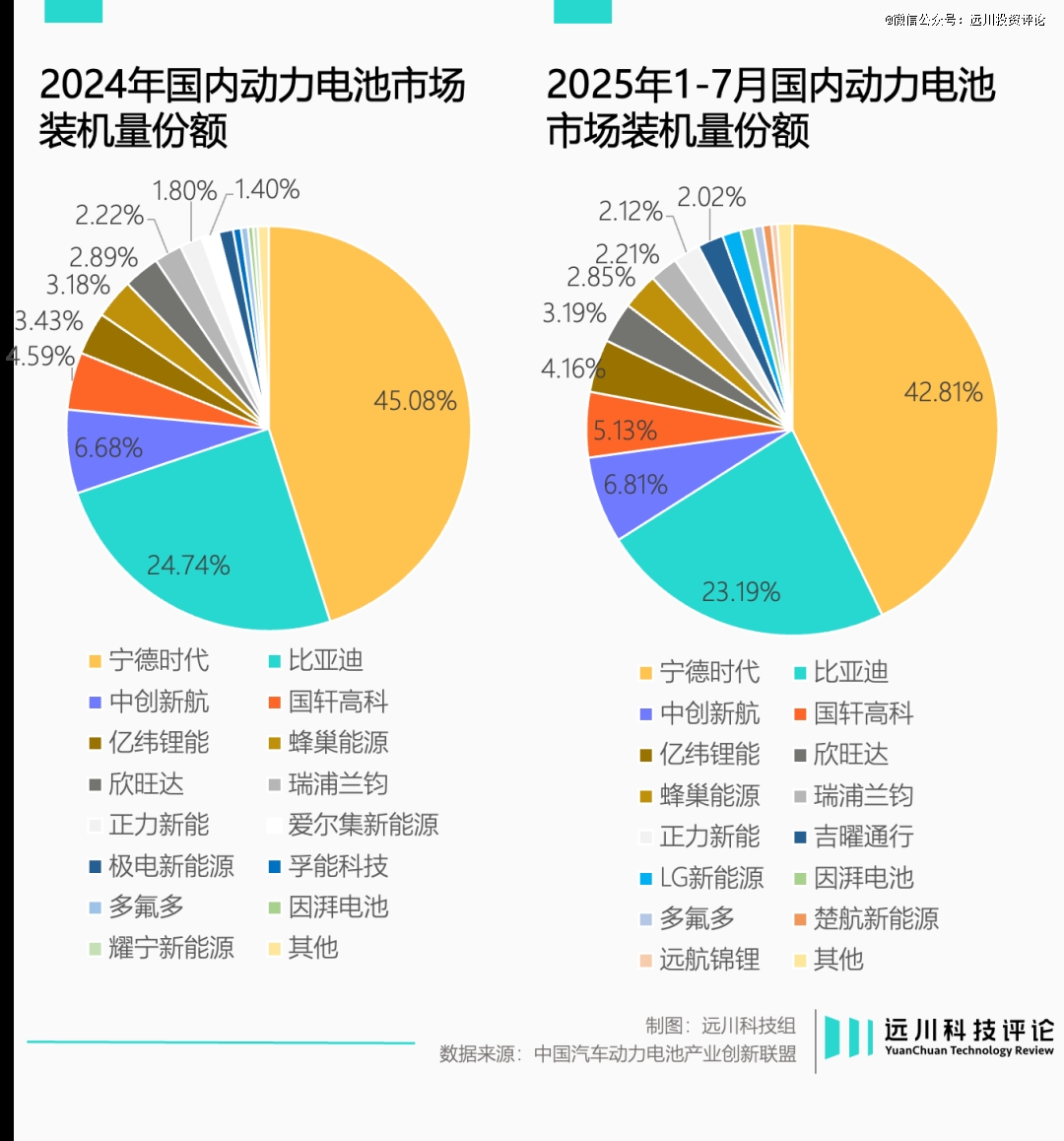 2019年至今,国内动力电池装车量翻了8倍有余,宁德时代和比亚迪组成的“头部两家”,市场份额稳定在70%左右,其余厂家在30%的生存空间里,演绎着残酷的丛林法则。