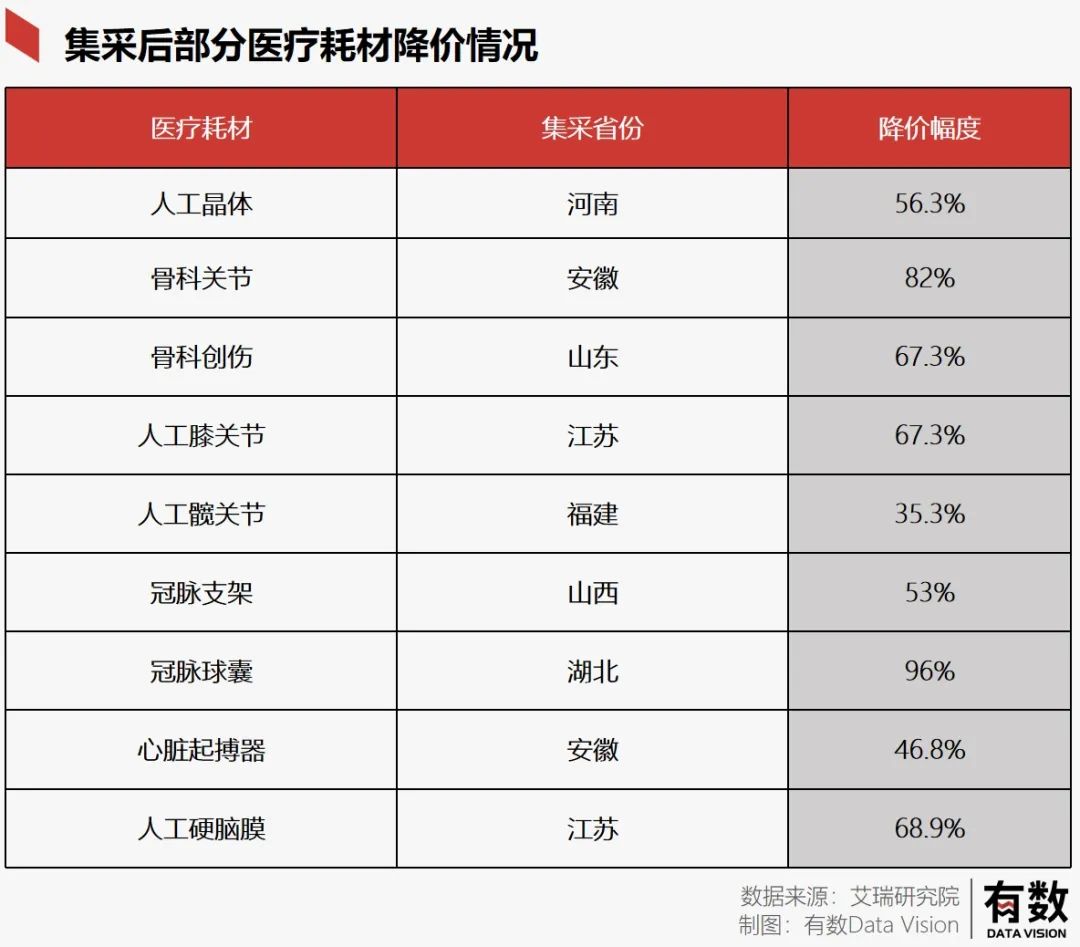 凭证艾瑞咨询的数据显示,集采之后无论是药品照样医疗耗材均泛起大幅度杀价情形,其中湖北医保局下手稀奇狠,冠状球囊耗材降价96%,纵然降价幅度最小的江苏双腔起搏器降幅也在15.9%。