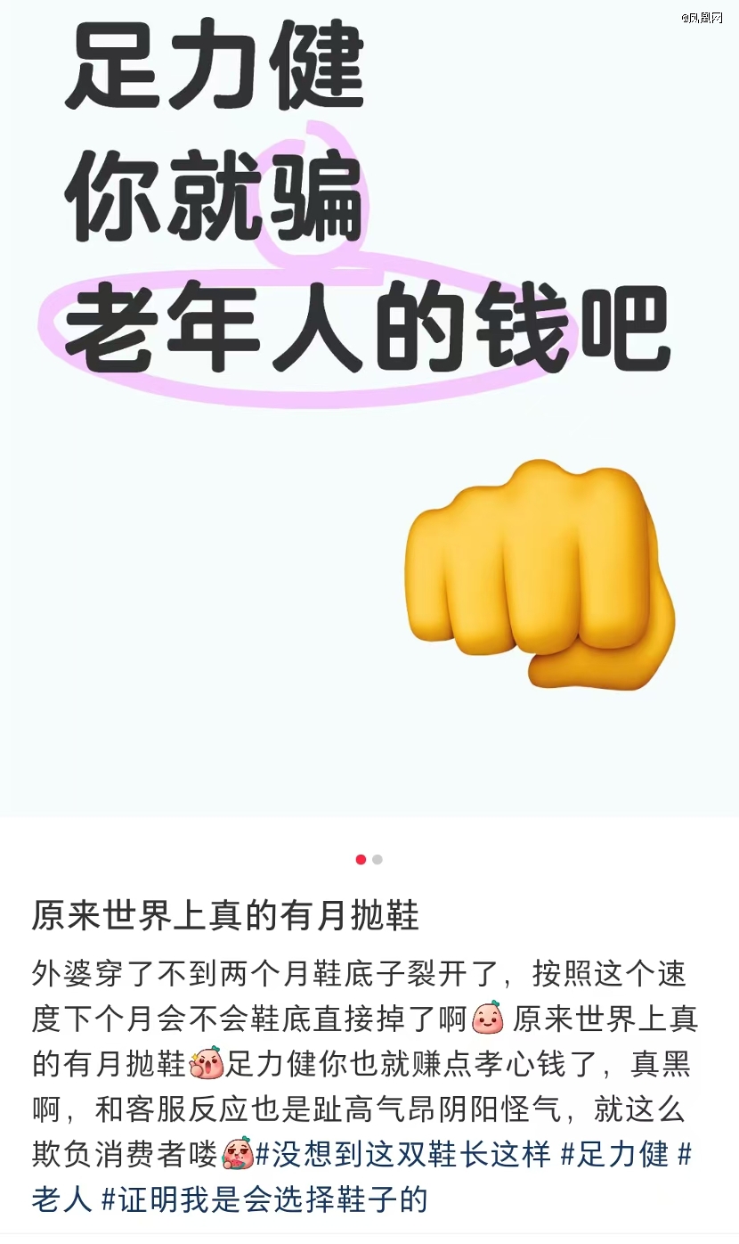 更让人唏嘘的是一位老顾客的经历:父亲多年来只认足力健,逢人就夸鞋子好穿,可这两年买的鞋却频频“掉链子”,要么脚挤得难受,要么足弓处压痛难忍,曾经的“忠粉”如今也成了“劝退”大军中的一员。